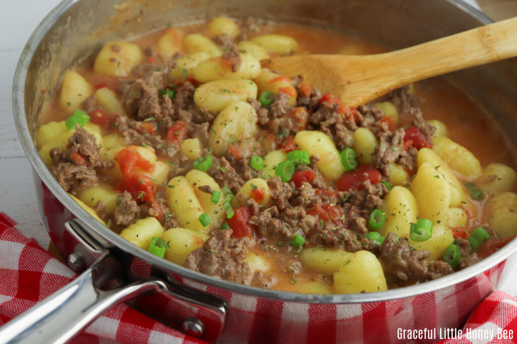 One Pan Creamy Ground Beef Gnocchi Graceful Little Honey Bee