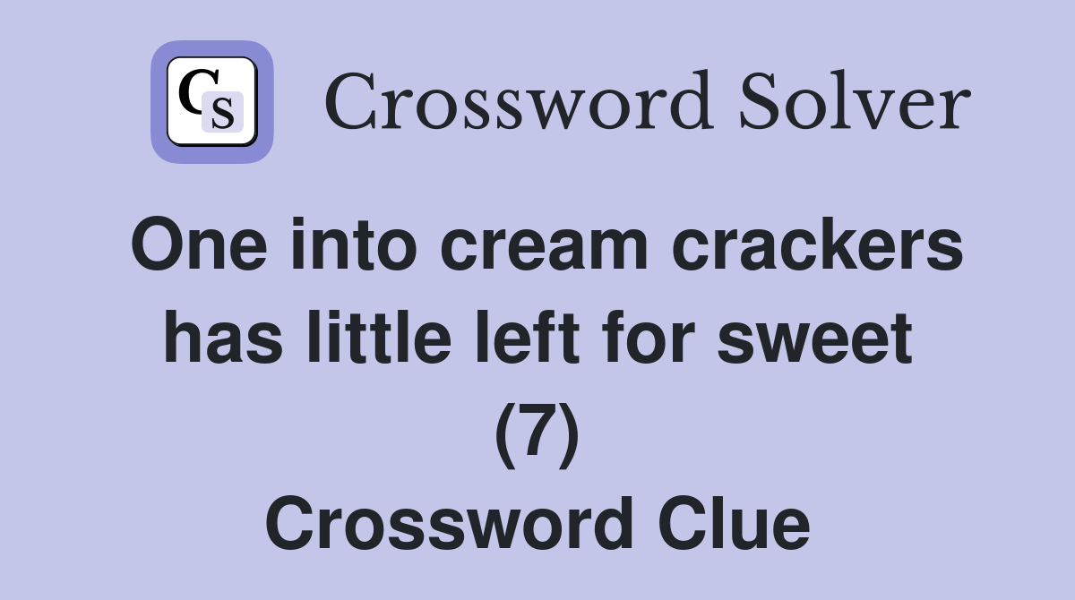 One into cream crackers has little left for sweet (7) Crossword Clue