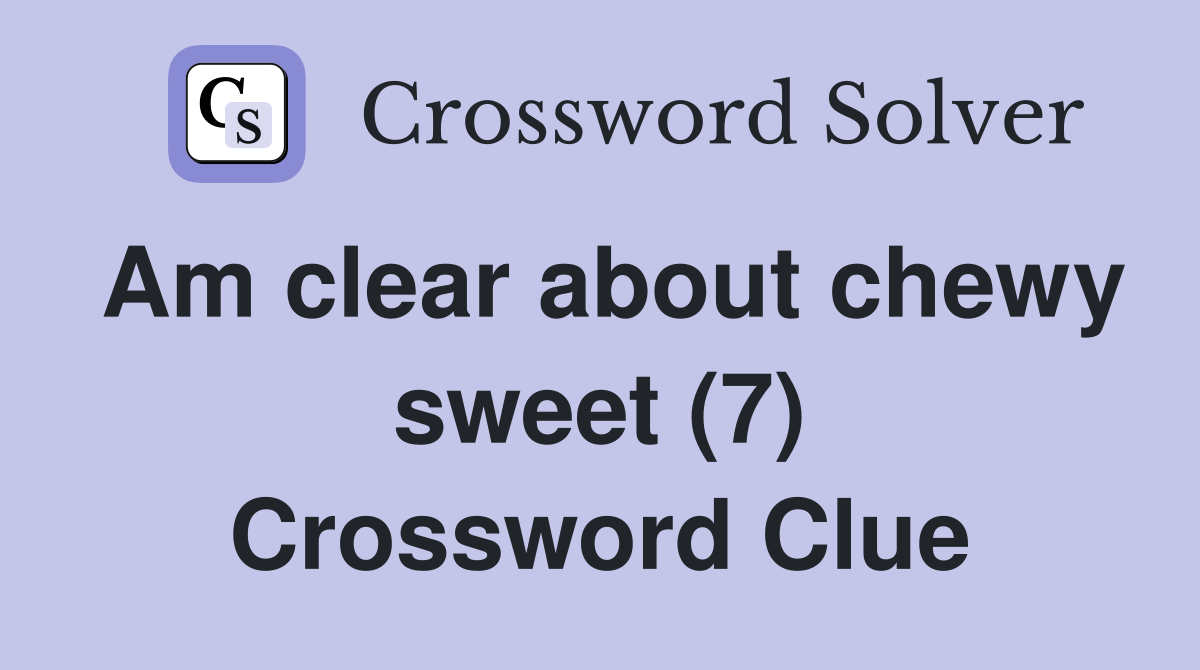Am clear about chewy sweet (7) Crossword Clue Answers Crossword Solver