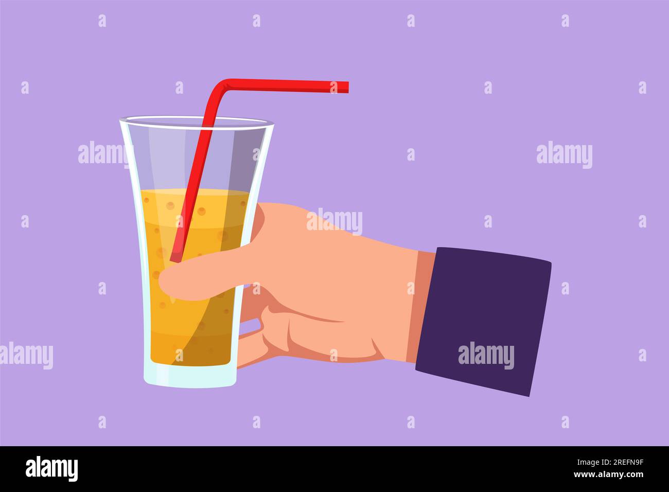 Graphic flat design drawing hand holding glass of soft drink Male hand