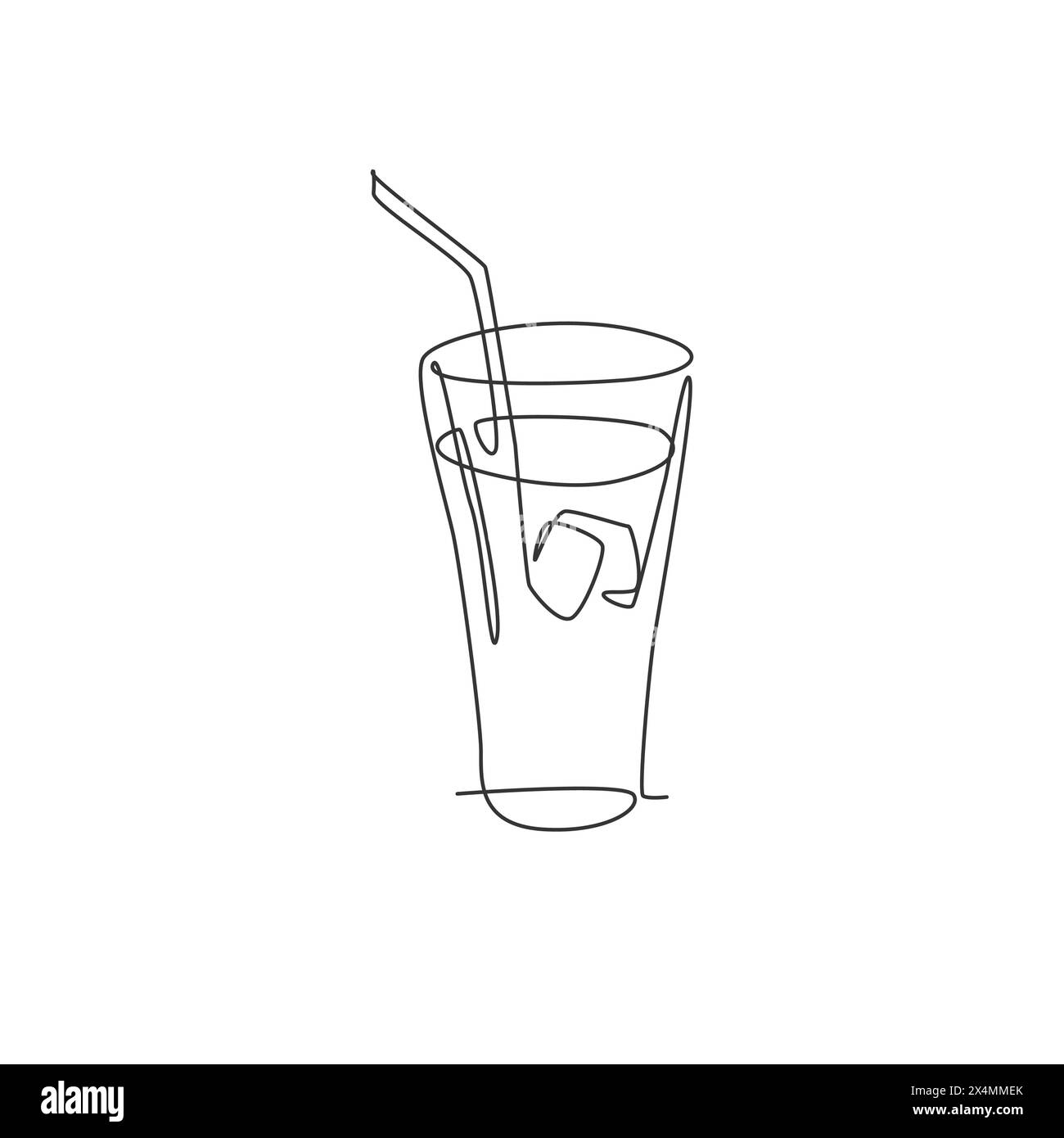 One continuous line drawing of fresh sweet soft drink on glass with ice