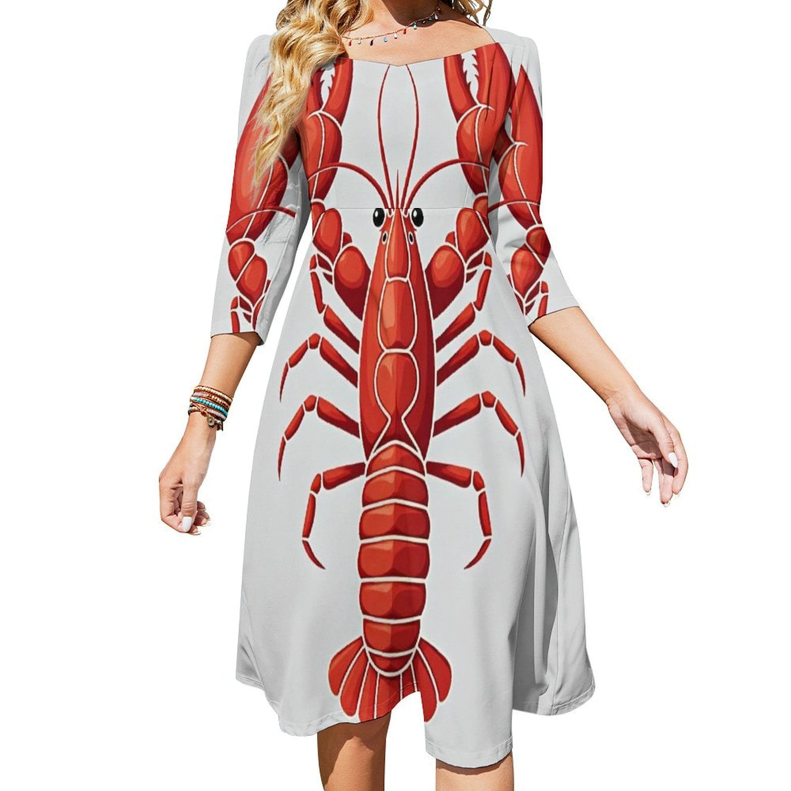 Red Lobster Graphic Sweetheart Knot Flared Dress Fashion Design Large