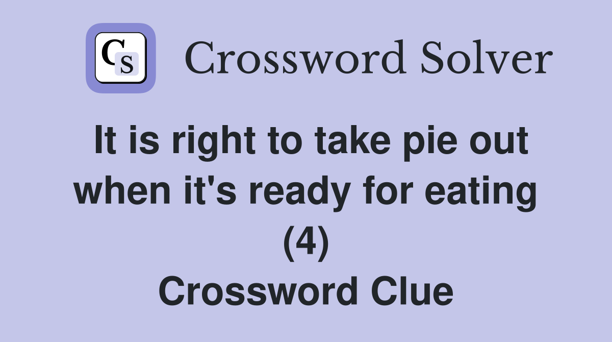 It is right to take pie out when it #39 s ready for eating (4) Crossword