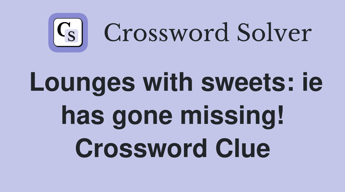 Lounges with sweets: ie has gone missing Crossword Clue Answers