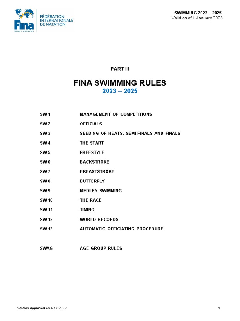 1 Swimming Technical Rules 04 01 2023 PDF Swimming (Sport) Sports
