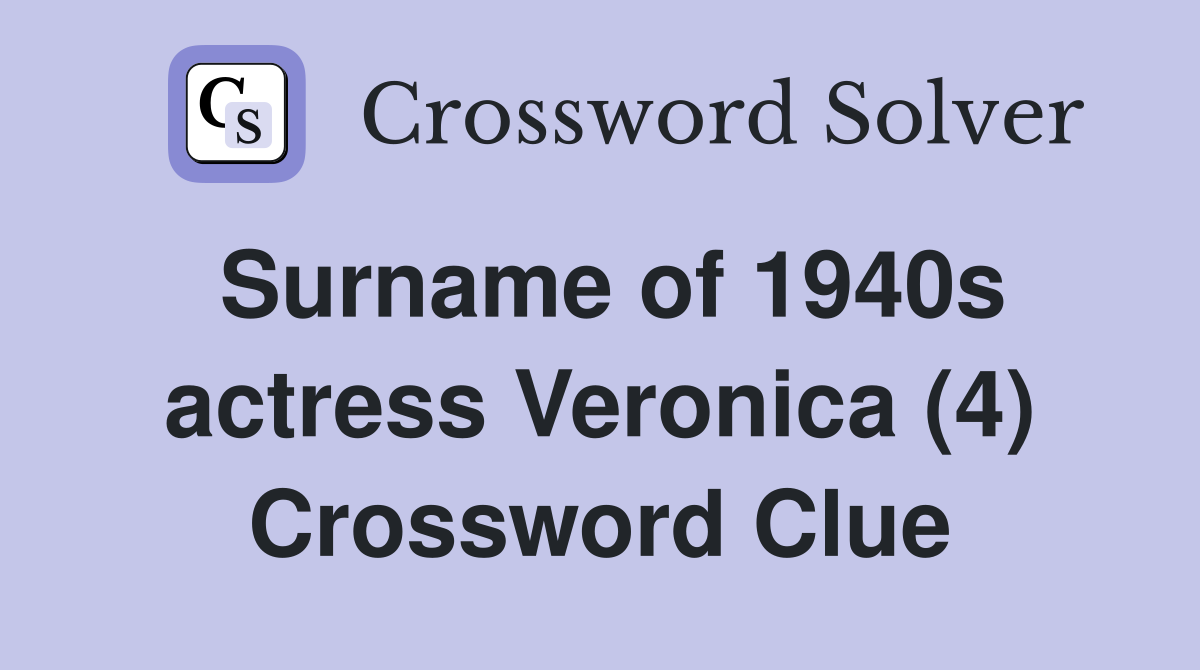 Surname of 1940s actress Veronica (4) Crossword Clue Answers