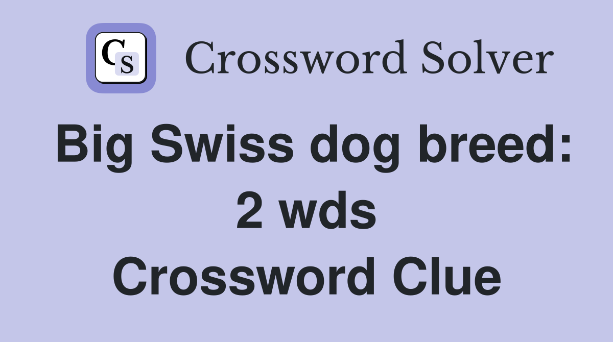 Big Swiss dog breed: 2 wds Crossword Clue Answers Crossword Solver