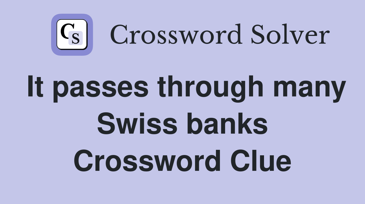 It passes through many Swiss banks Crossword Clue Answers Crossword