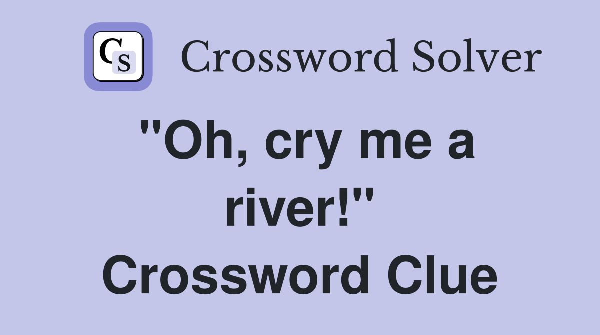 quot Oh cry me a river quot Crossword Clue Answers Crossword Solver