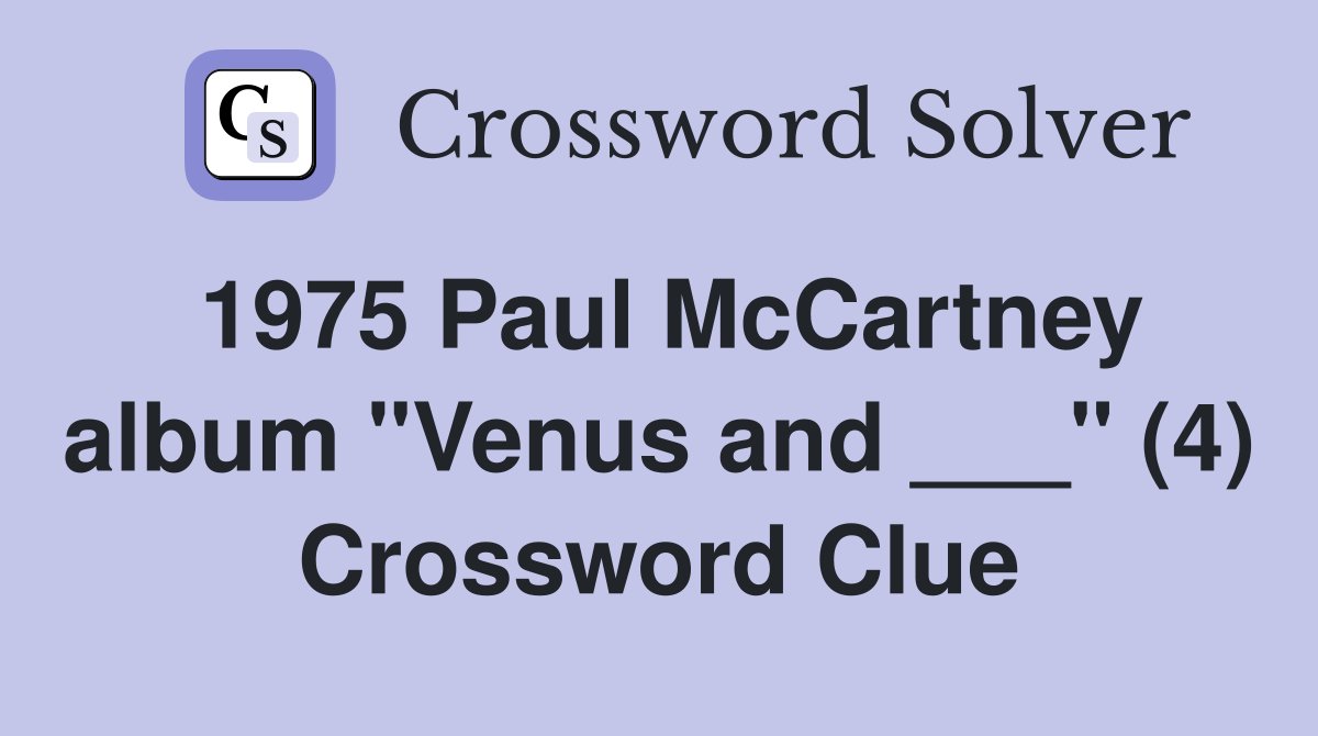 1975 Paul McCartney album quot Venus and quot (4) Crossword Clue Answers