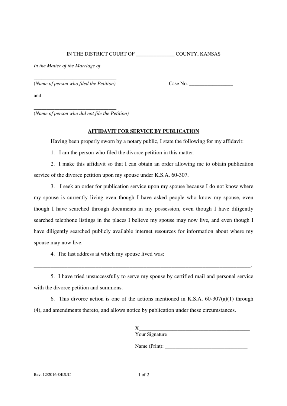 Kansas Affidavit for Service by Publication Fill Out Sign Online and