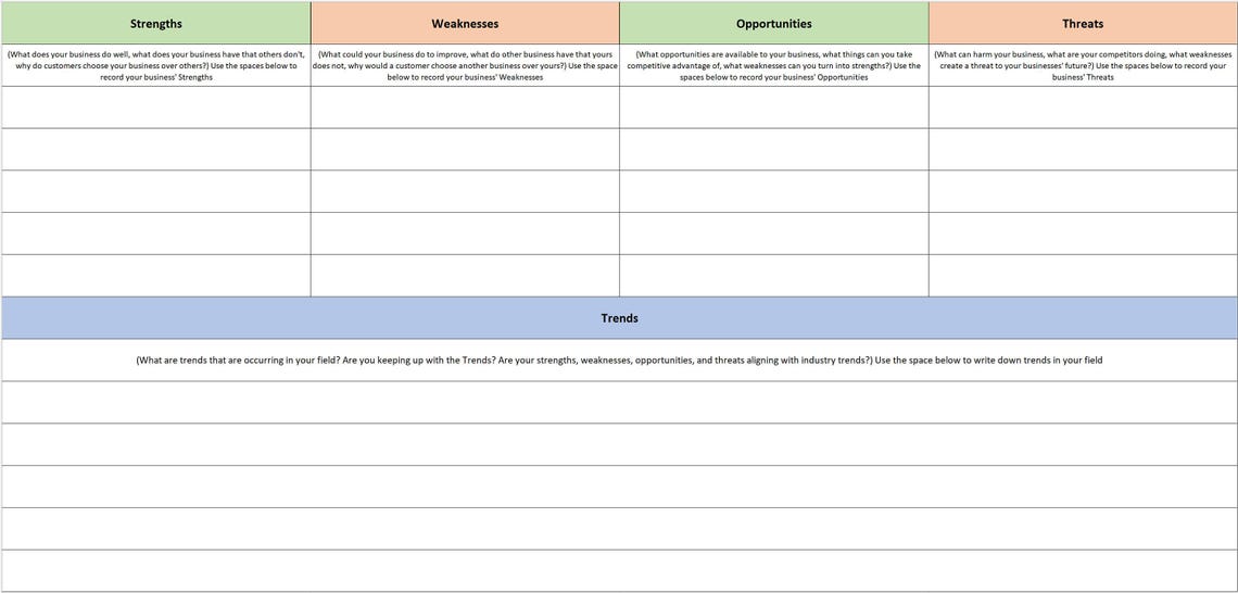 Excel SWOT Analysis Template Etsy