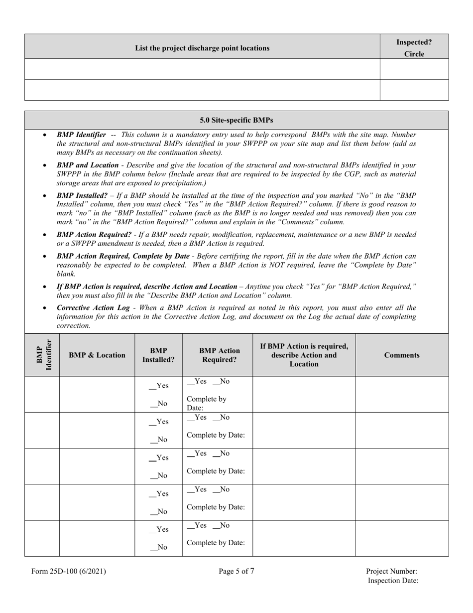 Fillable Online SWPPP Construction Inspection Report (Part 2) Form