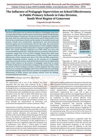 The Influence of Pedagogic Supervision on School Effectiveness in