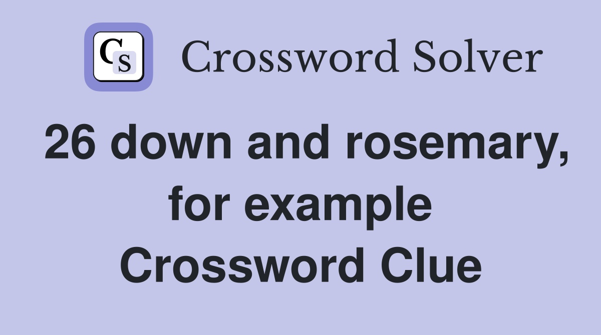 26 down and rosemary for example Crossword Clue Answers Crossword