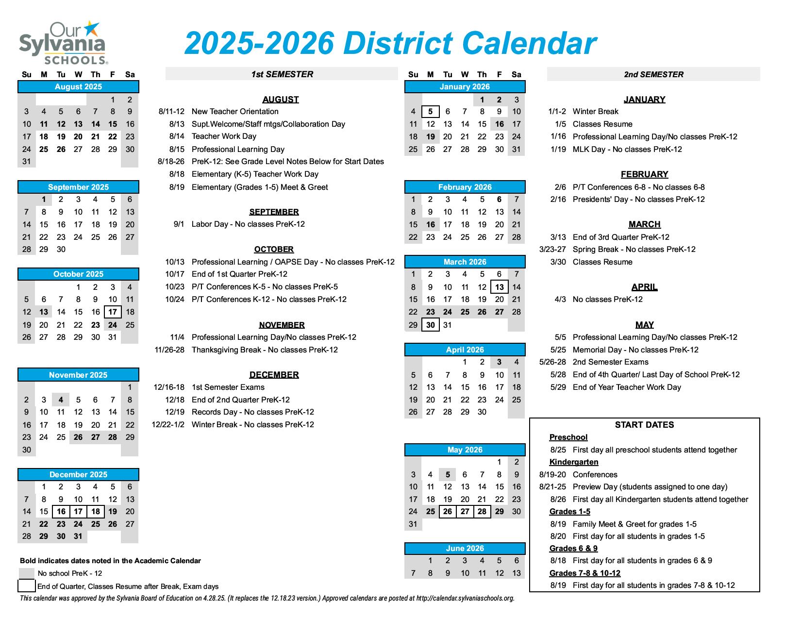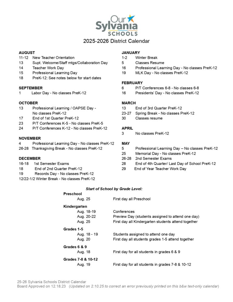 Sylvania Schools District Calendar 2025 Schoolcalendars net