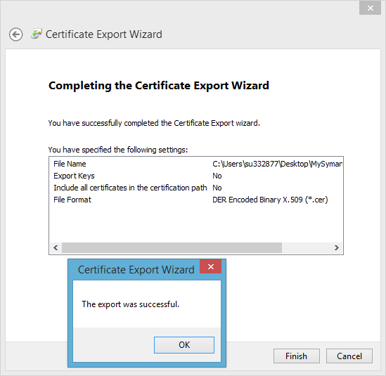 Wow Now Symantec certificate is successfully export to your desktop or