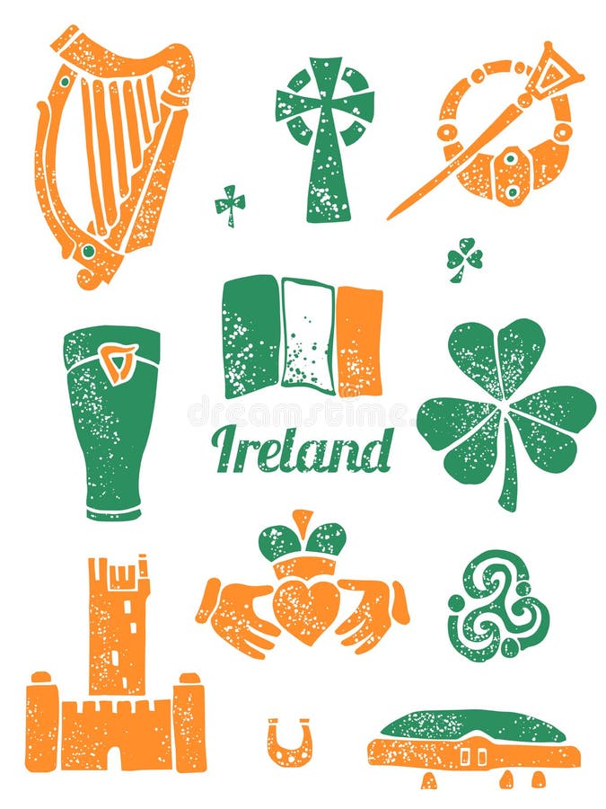 Symbol of Ireland Set in Lino Style Stock Illustration Illustration