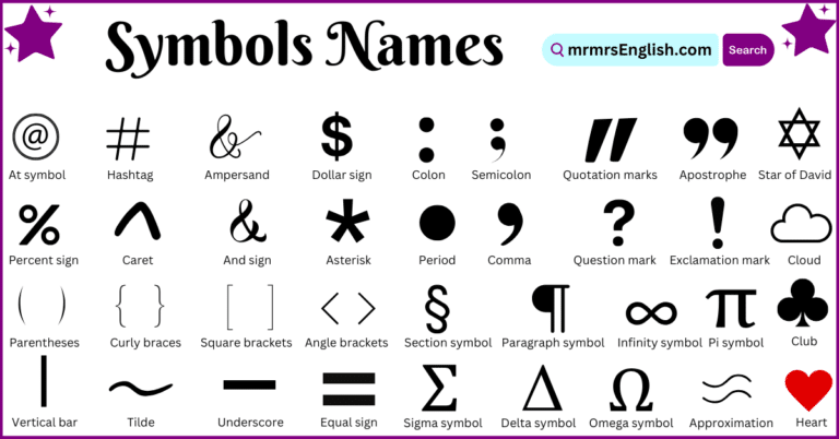 Symbols Names and their Uses in English with Pictures MR MRS ENGLISH
