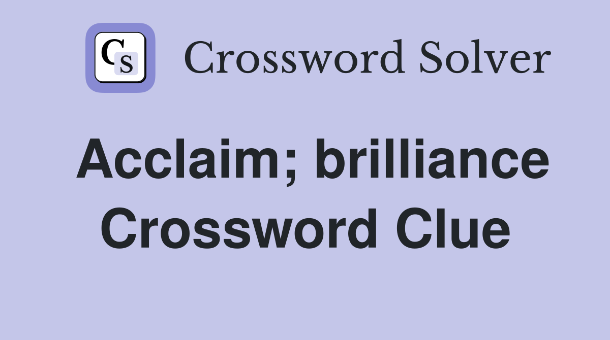 Acclaim brilliance Crossword Clue Answers Crossword Solver