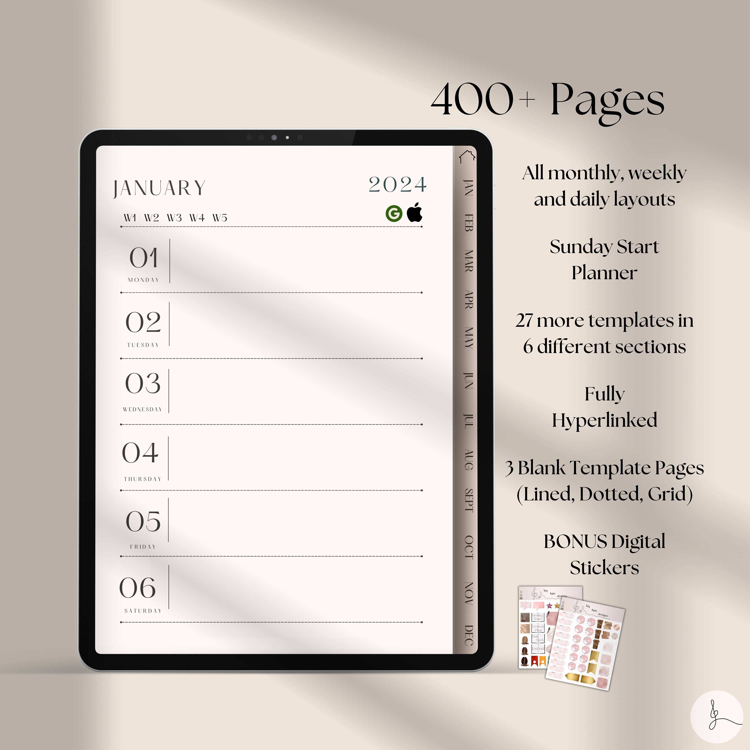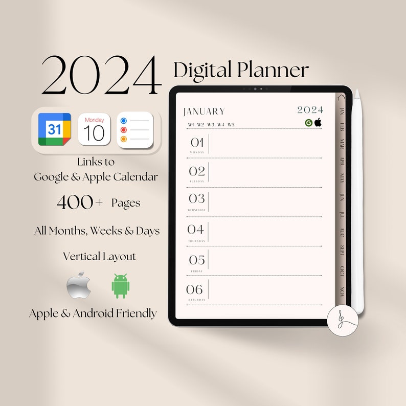 2024 Digital Planner Goodnotes Apple Calendar Google Calendar