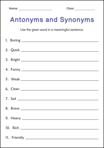 Synonyms and Antonyms Worksheet For Grade 2 Kidpid