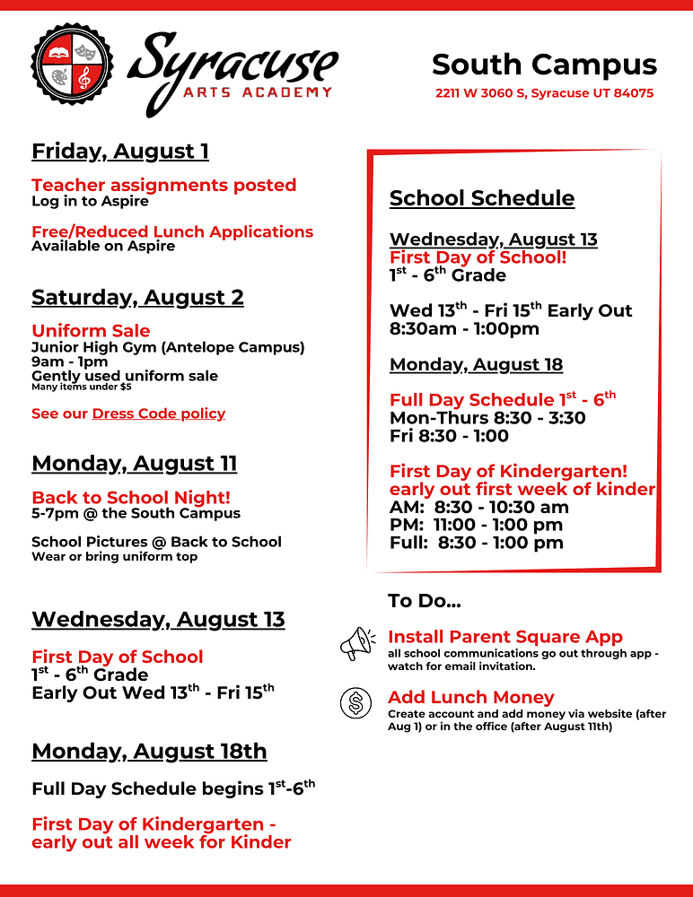 Syracuse Arts Academy Calendar