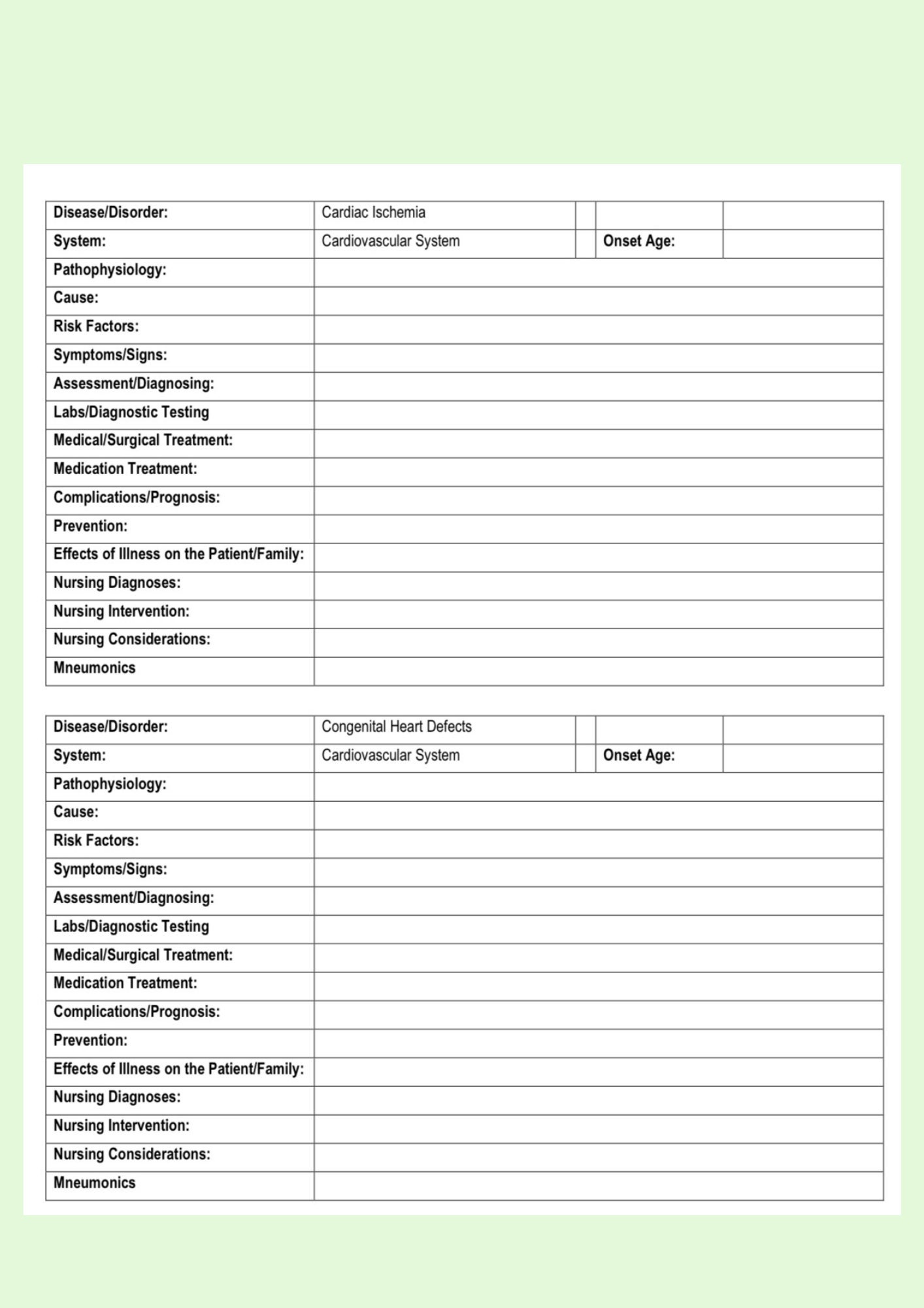 Nursing Pathophysiology Template Printable Etsy