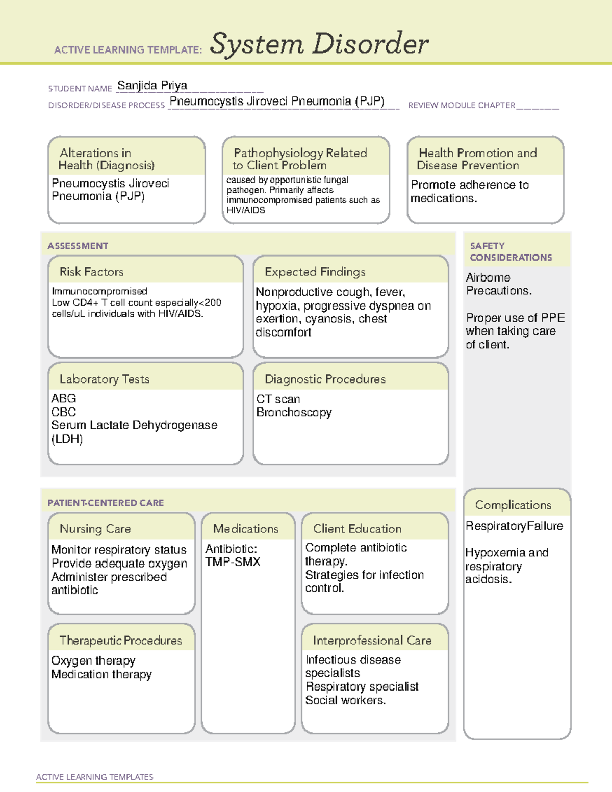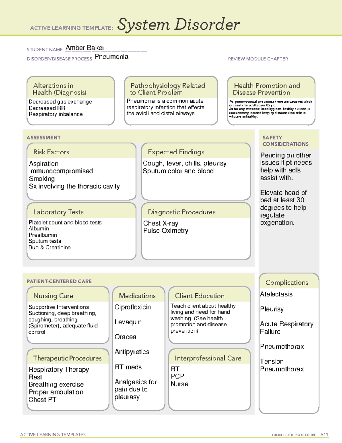 System disorder pneumonia ACTIVE LEARNING TEMPLATES THERAPEUTIC