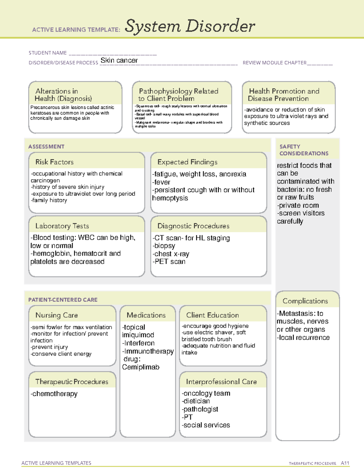 Active Learning Template: Skin Cancer System Disorder Overview Studocu