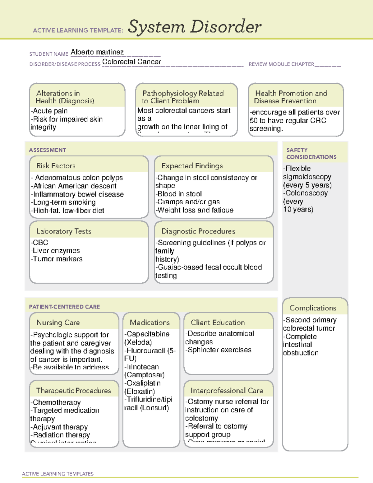 System disorder colorectal cancer ACTIVE LEARNING TEMPLATES System