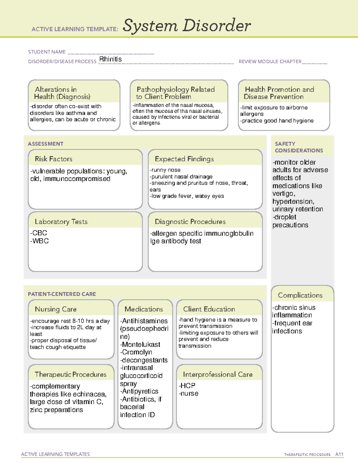 Active Learning Template: Rhinitis Related Disorders (Therapy) Studocu