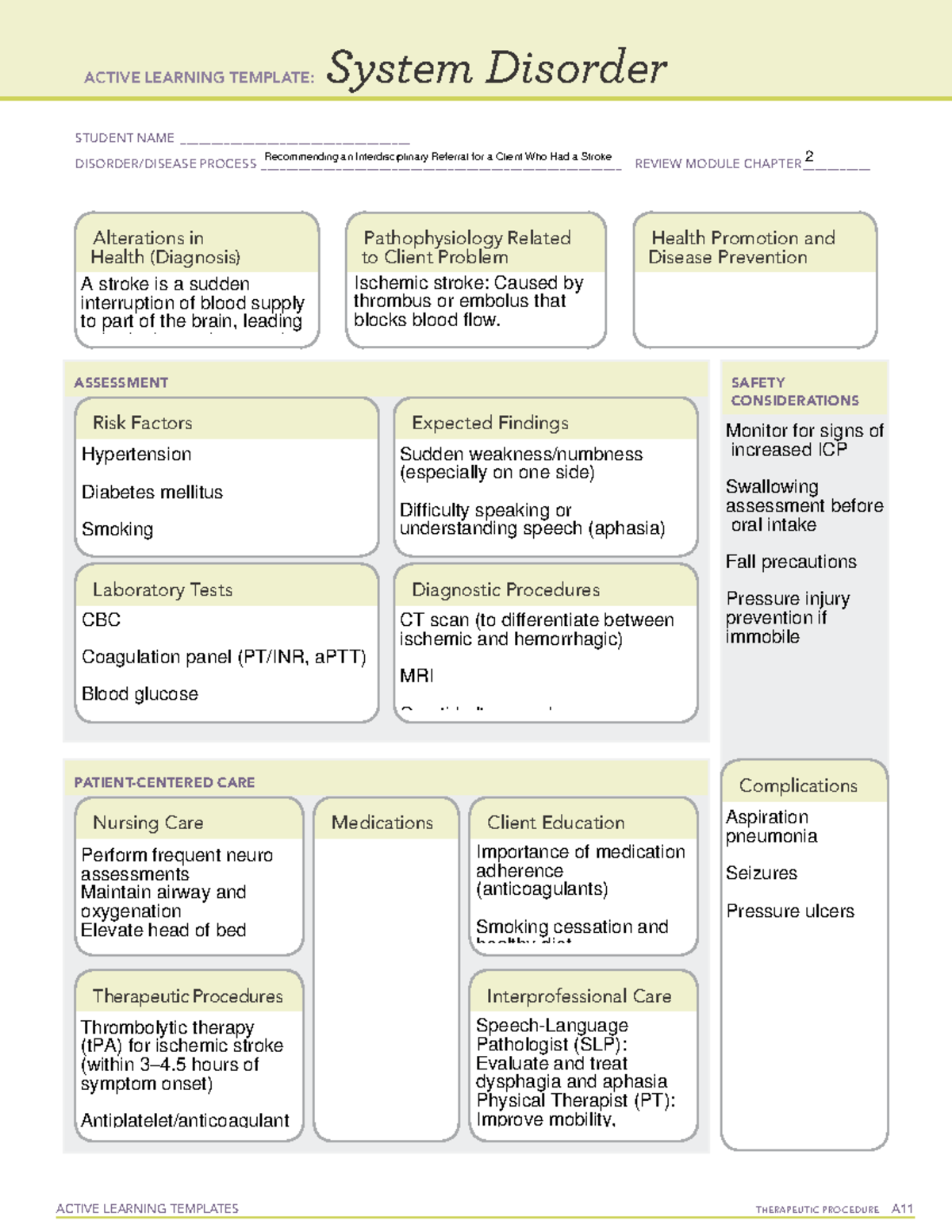 ACTIVE LEARNING TEMPLATE: System Disorder Stroke Assessment Care