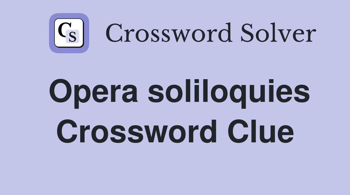 Opera soliloquies Crossword Clue Answers Crossword Solver
