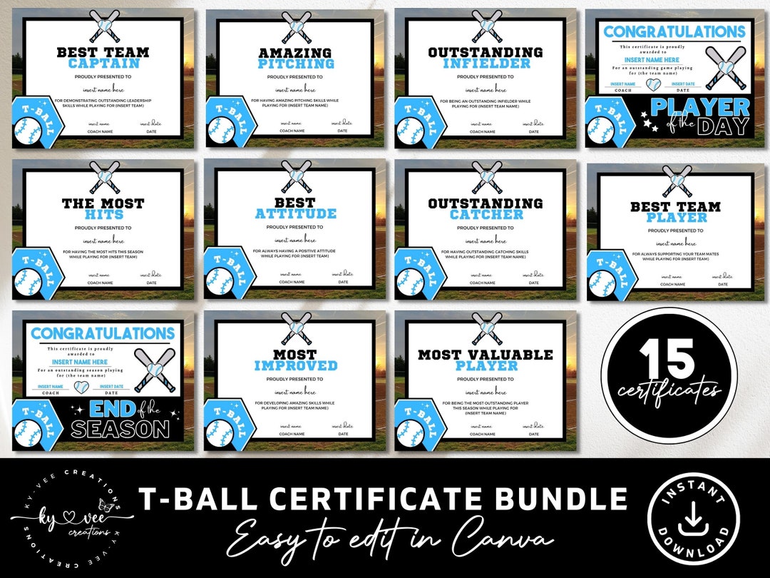 15 T Ball Certificate Templates INSTANT DOWNLOAD Editable Etsy