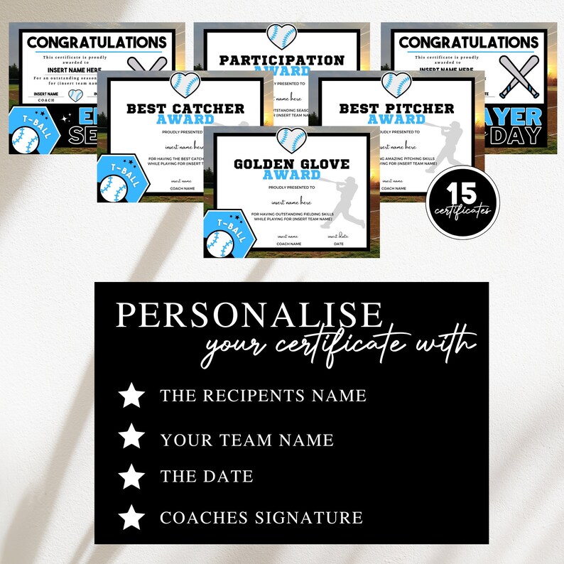15 T Ball Certificate Templates INSTANT DOWNLOAD Editable Etsy Australia