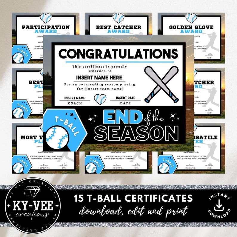 15 T Ball Certificate Templates INSTANT DOWNLOAD Editable Etsy UK