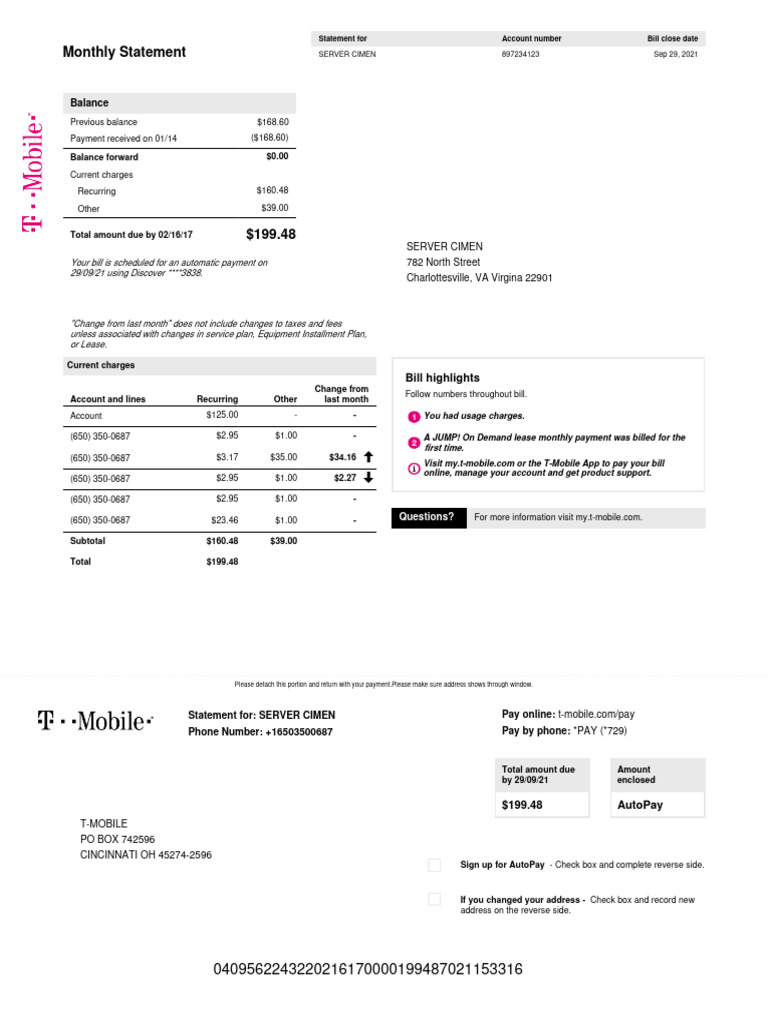 T Mobile Cell Phone Bill Editable Template Documentplug