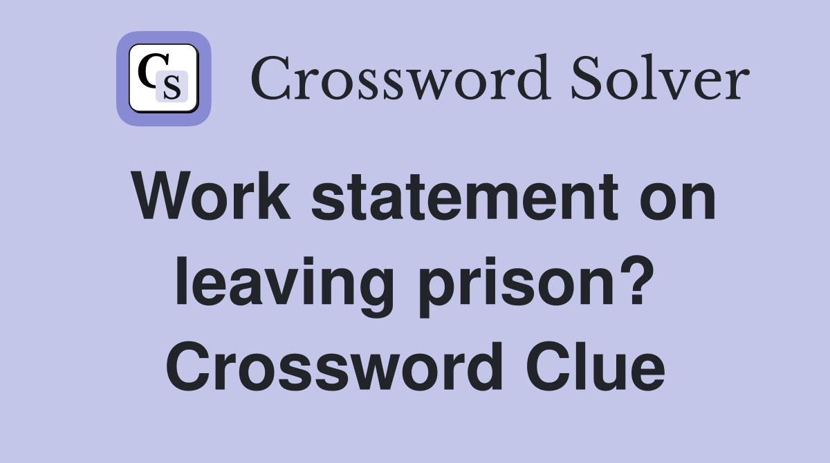 Work statement on leaving prison? Crossword Clue Answers Crossword