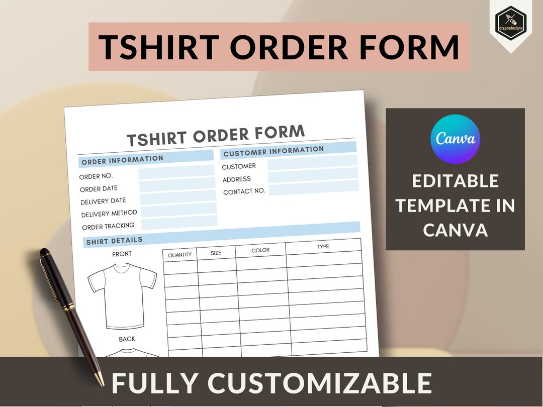 Editable T shirt Order Form Template: Customizable Business Form Etsy