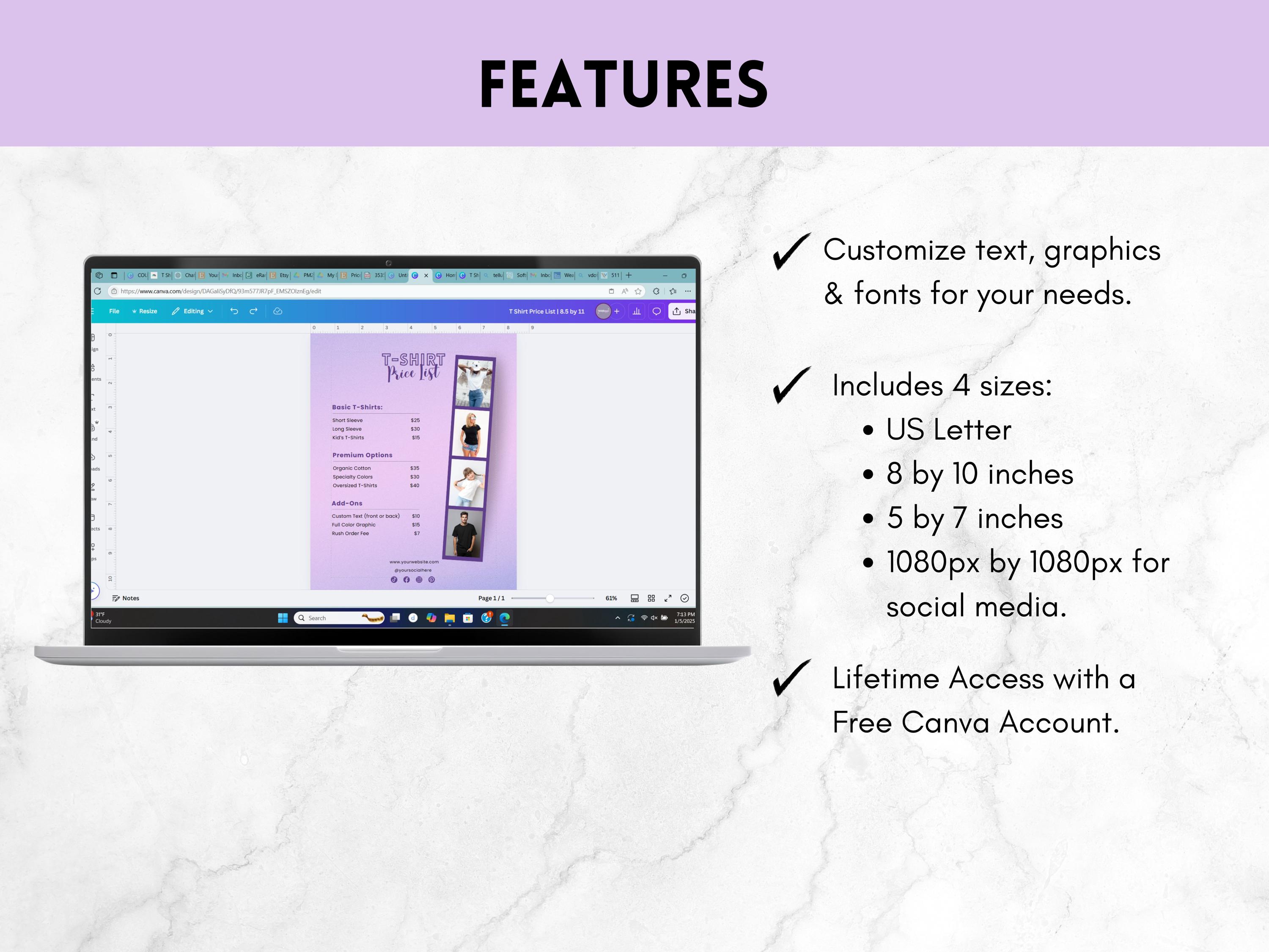 Canva Template Bulk T shirt Price List Editable Etsy