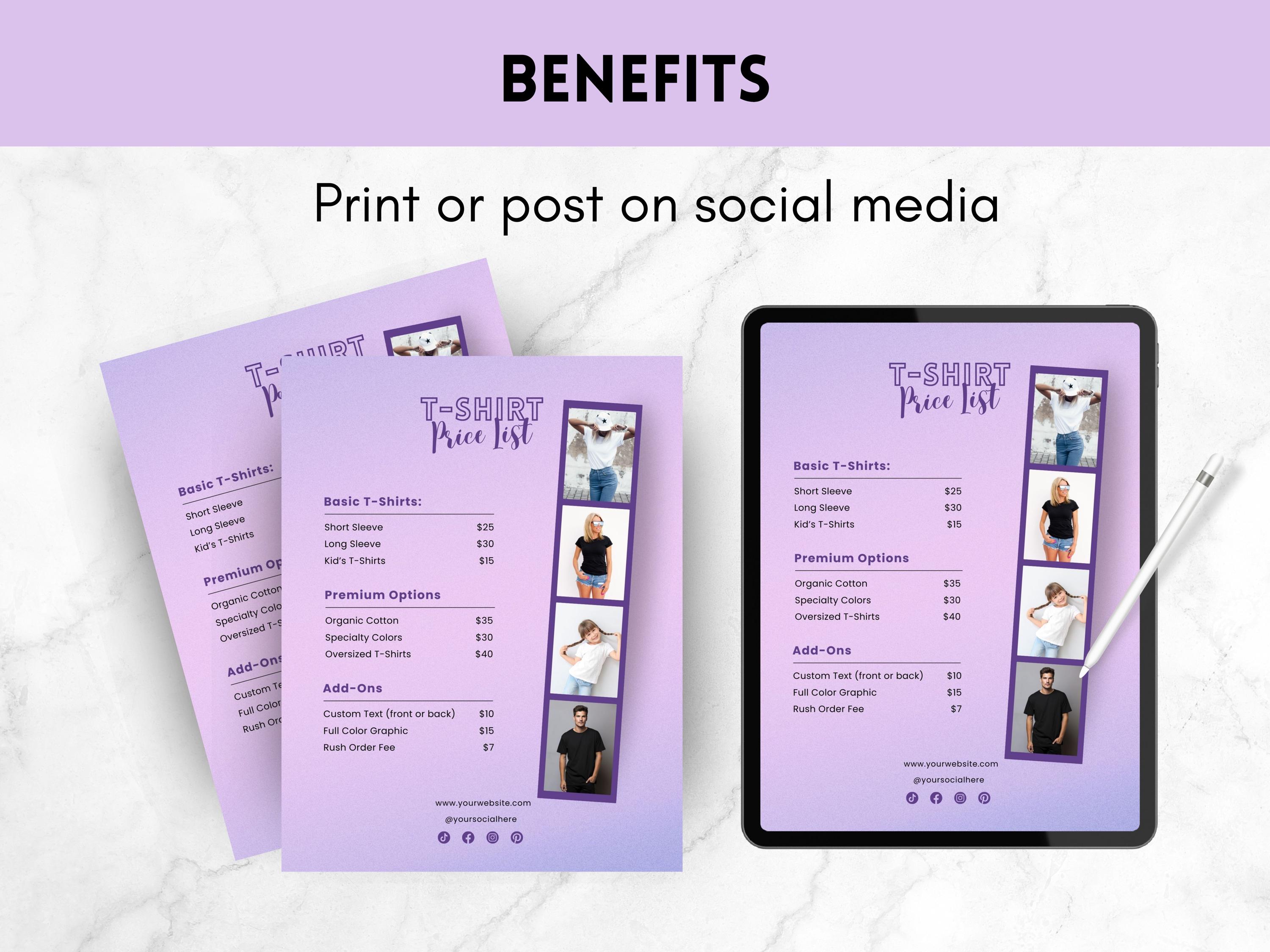 T shirt Price List Template: Small Business Pricing Guide (canva