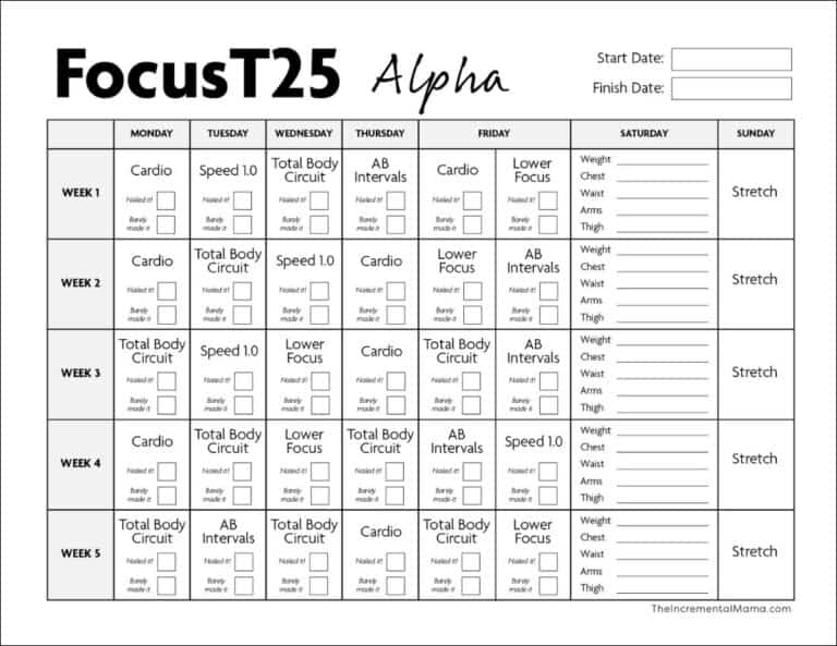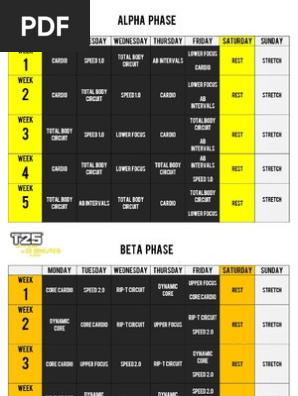 T25 Alpha Workout Schedule Printable With Measurement