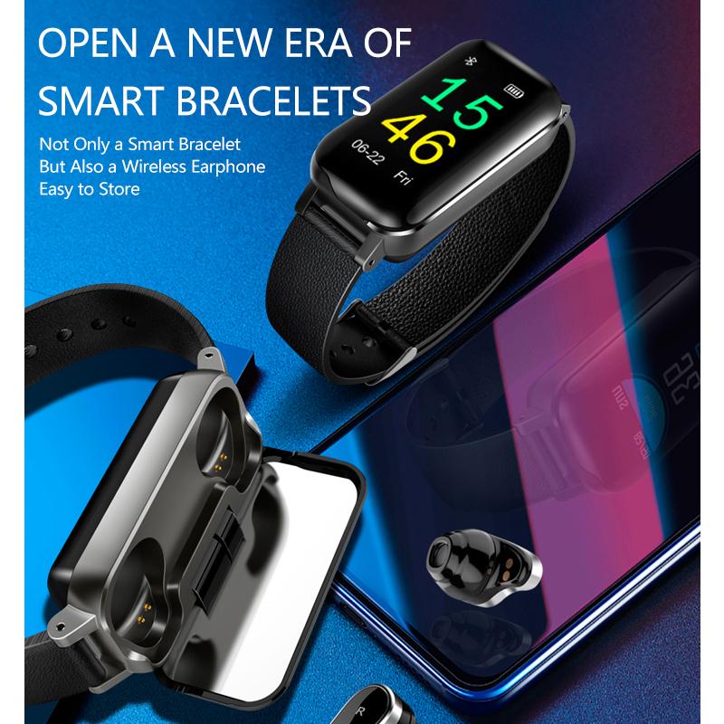 TWS Earbuds Smart Bracelet Bluetooth 5 0 Smart Wristband T89 Fitness