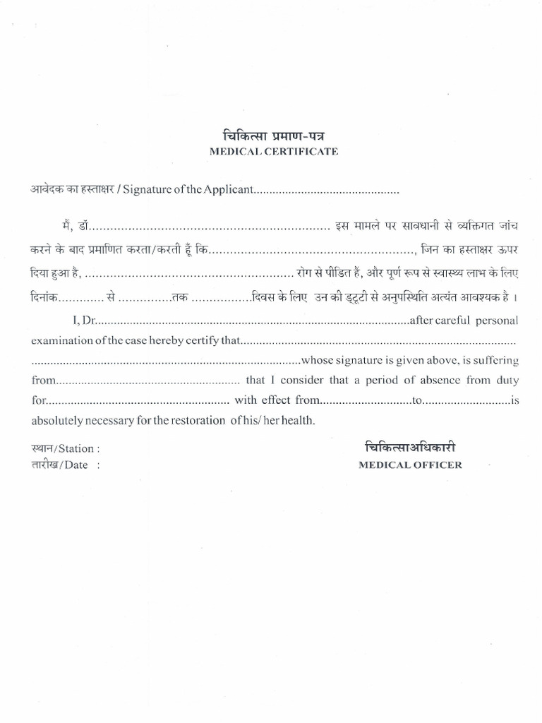 Medical Fitness Certificate PDF Download