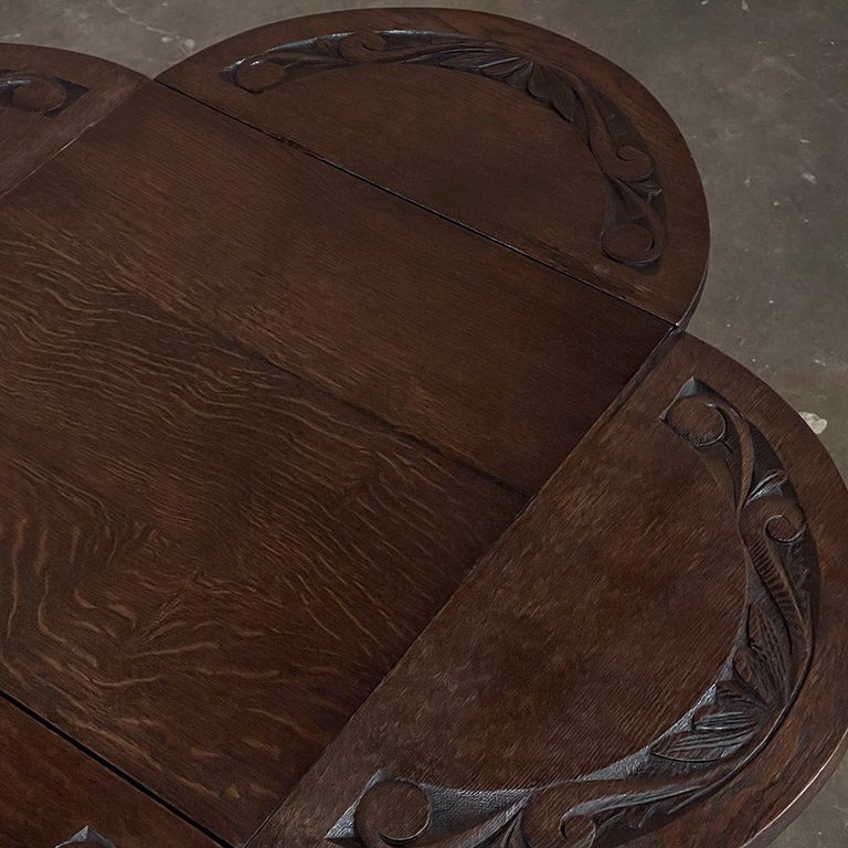 Antique Heavily Carved Oak Figural Dining Table with Lion Heads and Paw