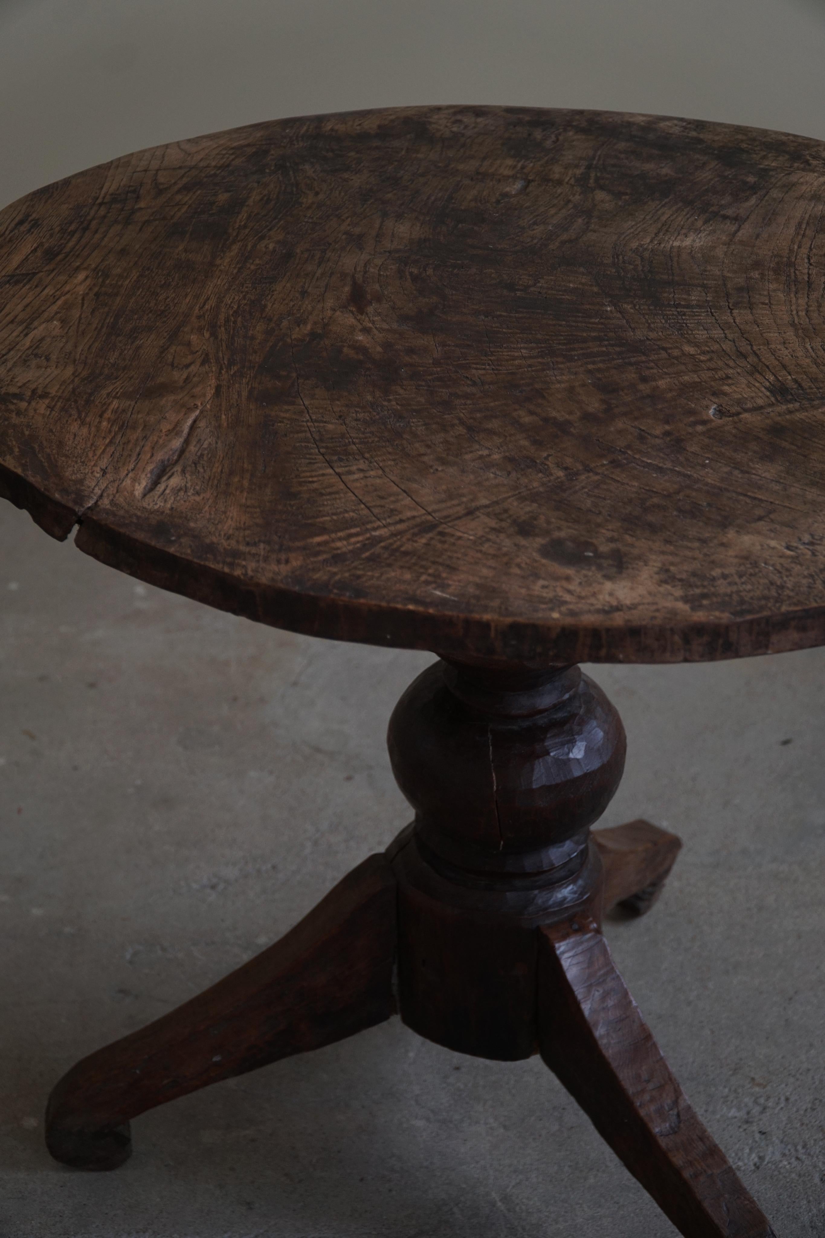 Antique Oak Dining Table / Side Table with Tripod Legs Wabi Sabi Late
