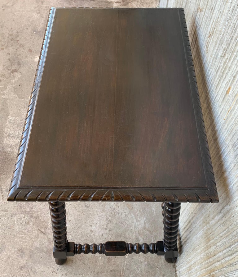Spanish 1900s Walnut Side Table Single Drawer with Wood Stretcher at
