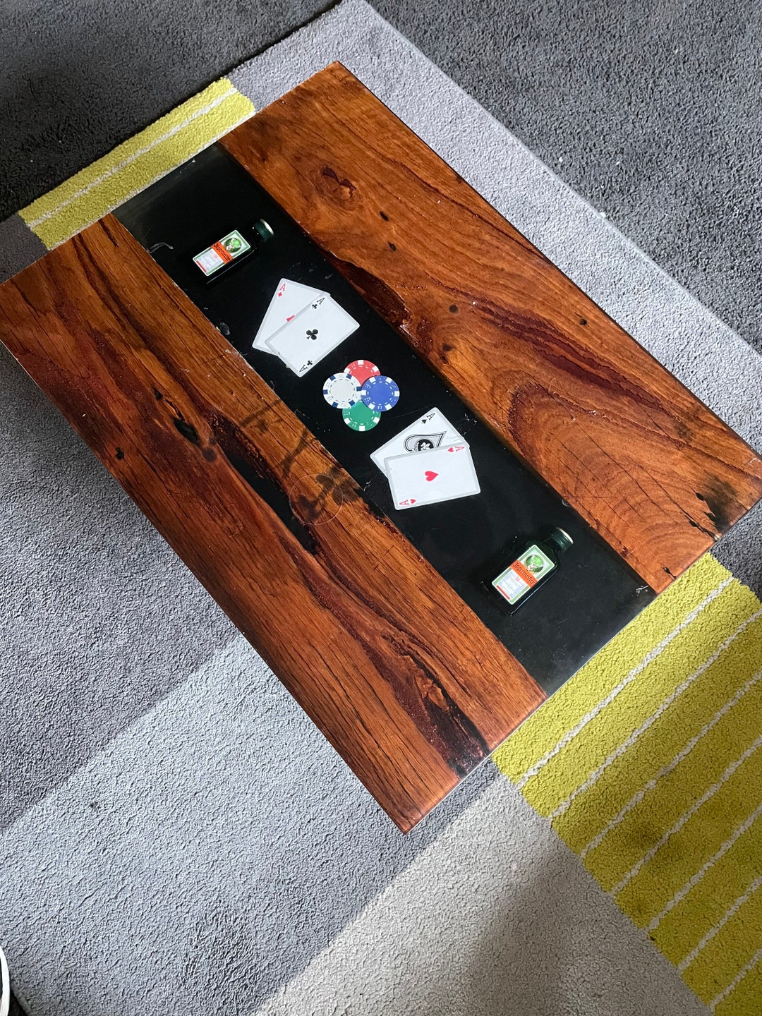 Poker Resin Table With Jager Bottles Playing Cards Etsy