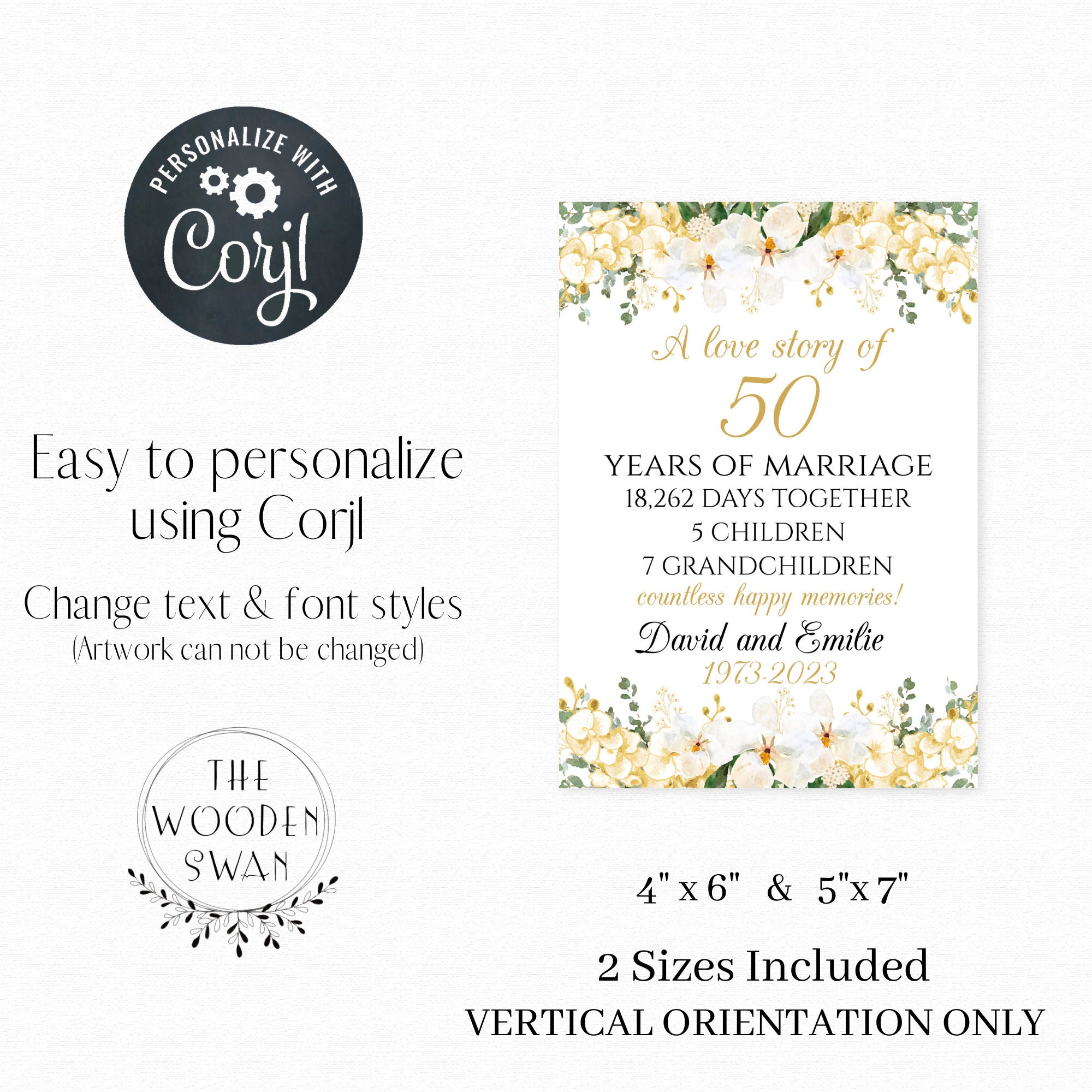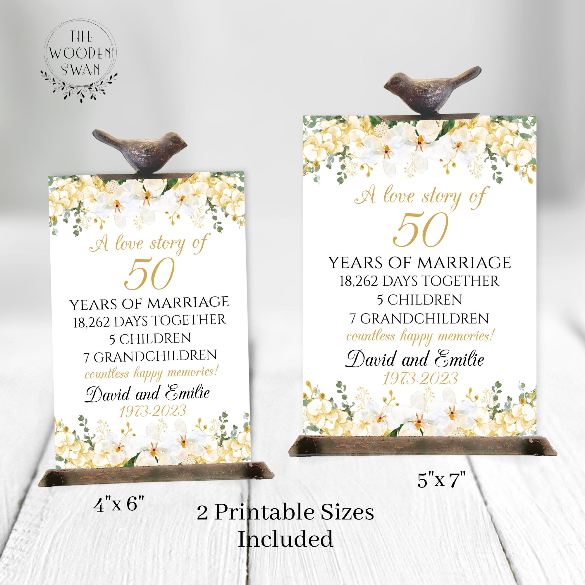 Printable Table Sign Template 50th Wedding Anniversary Modern Floral